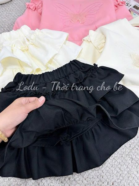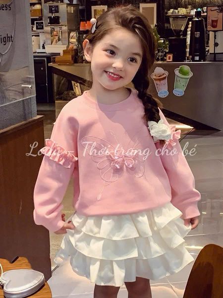 🍓 Sét áo nỉ hình thêu tay bèo +chân váy tầng đẹp có kèm lót trong kín đáo