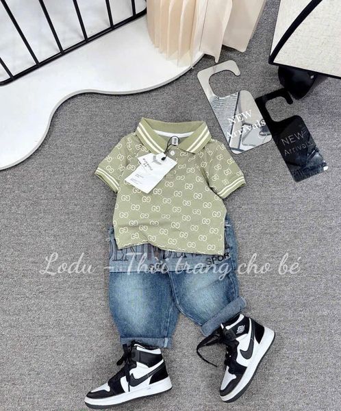 🌸 Set bò nam cổ bẻ cho bé trai (Mã A1)